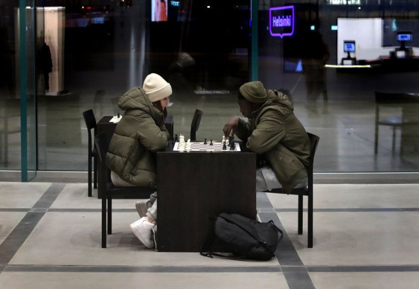 Una pareja juega una partida de ajedrez en la planta baja del edificio, donde hay media docena de mesas con tableros. JAIME VILLANUEVA