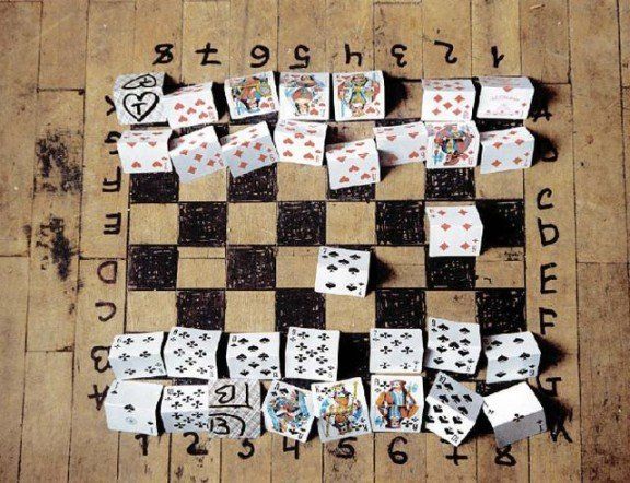 Tienes tablero de ajedrez pero te faltan fichas para poder jugar una partida, pues nada como unas cartas de póker y problema solucionado.