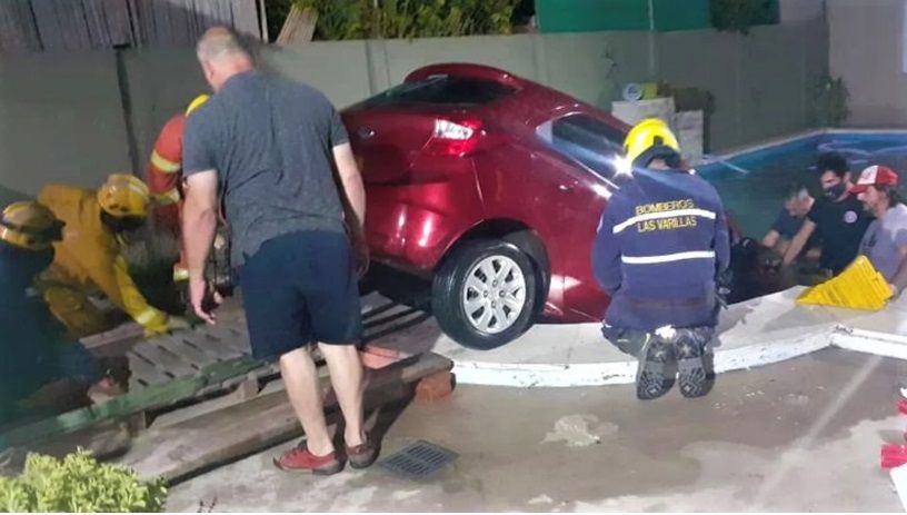Dos dotaciones de Bomberos de Las Varillas acudieron a la vivienda, ubicada en calle Uspallata 58, quienes, después de numerosos esfuerzos, lograron sacar el auto de la pileta tras un arduo trabajo.