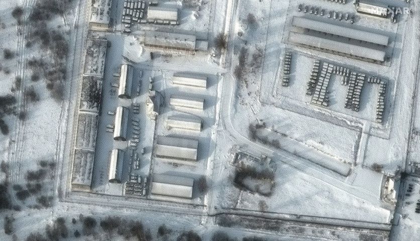Imagen tomada por satélite de las acuartelamientos rusos en Klimovo. MAXAR TECHNOLOGIES EFE