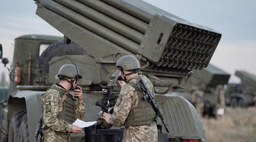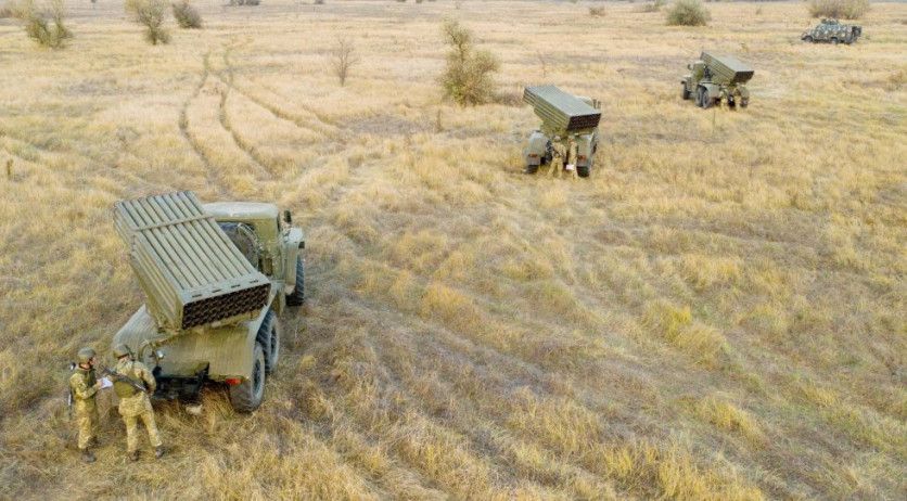 Mmiembros de las Fuerzas Armadas de Ucrania se entrenan con lanzacohetes múltiples BM-21 Grad en unos ejercicios militares tácticos realizados en un campo de tiro en la región de Kherson, Ucrania. REUTERS