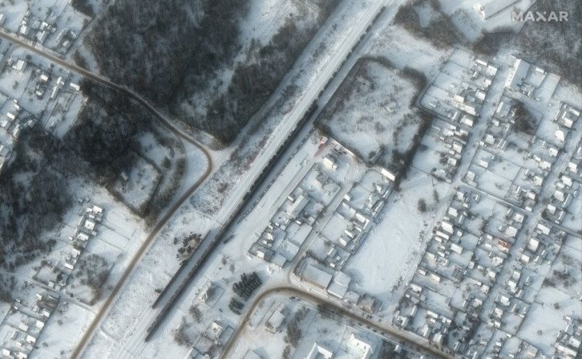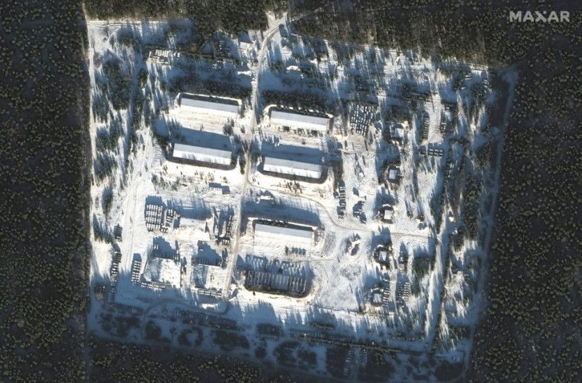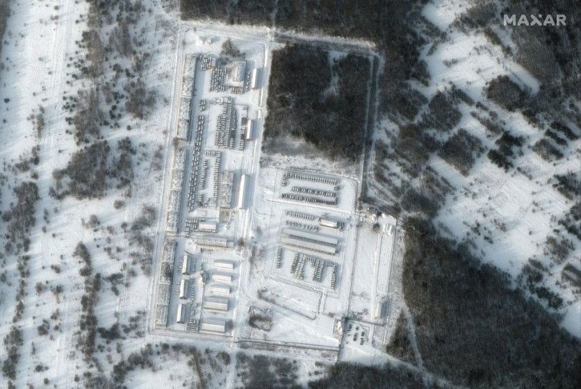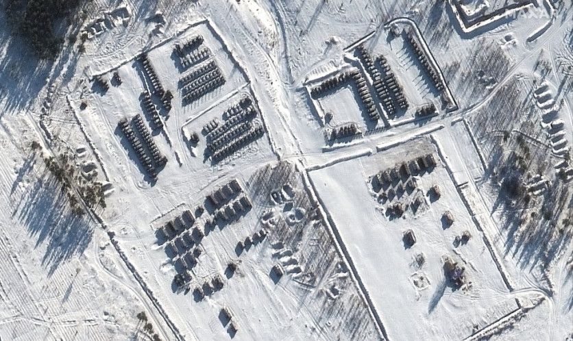 Imagen tomada por satélite en la que se ven las posiciones rusas en sus acuartelamientos de Klimovo. MAXAR TECHNOLOGIES EFE