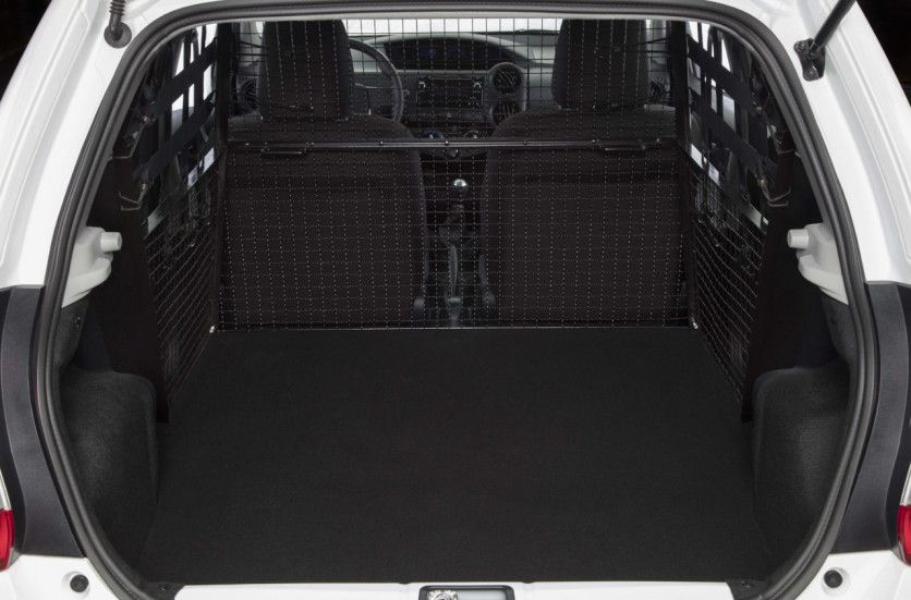 Puertas adentro se destaca una sólida estructura metálica, compuesta por una red lateral desmontable de protección que permite acceder a la carga tanto desde el baúl como también a través de las puertas traseras. Además, dispone de una reja que divide el panel de carga del sector de pasajeros para proteger al conductor y al acompañante.