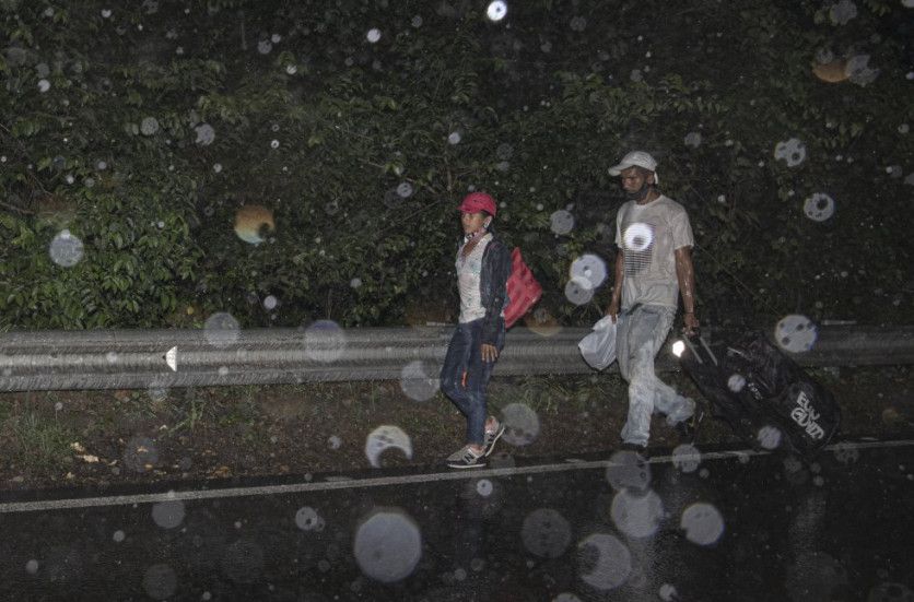 Migrantes venezolanos caminan bajo fuertes lluvias por una carretera en el Norte de Santander, Colombia. Noviembre de 2020. FABIOLA FERRERO