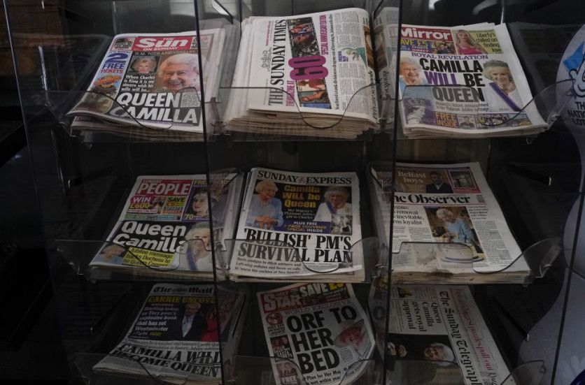 Portadas de los periódicos británicos del día, que destacan la intención de Isabel II de que Camilla de Cornualles sea la reina consorte cuando el príncipe Carlos de Inglaterra suba al trono. ALBERTO PEZZALI AP