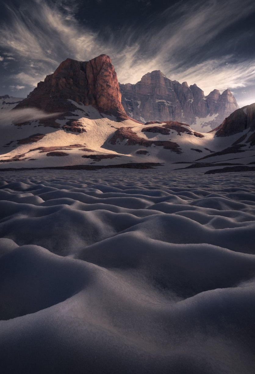 Una lengua de frío y hielo El tercer puesto en el podio a la mejor serie fotográfica ha sido para el italiano Andrea Zappia, un entusiasta de los paisajes y la naturaleza. "Siempre me ha encantado caminar por la montaña y por el mar, y el hecho de poder inmortalizar estos lugares en determinados momentos del día es algo maravilloso. Inicialmente me inspiré en los fotógrafos que más admiraba, pero con el tiempo he ido adquiriendo diversas técnicas para darle una impronta personal a mis trabajos", explica en su página web. Su esfuerzo por diferenciarse del resto le ha convertido en un especialista de la fotografía panorámica y nocturna, "un mundo antes desconocido para mí; me parecía imposible poder fotografiar en condiciones de poca luz". Esta bella estampa alpina es un buen ejemplo de su talento. ANDREA ZAPPIA