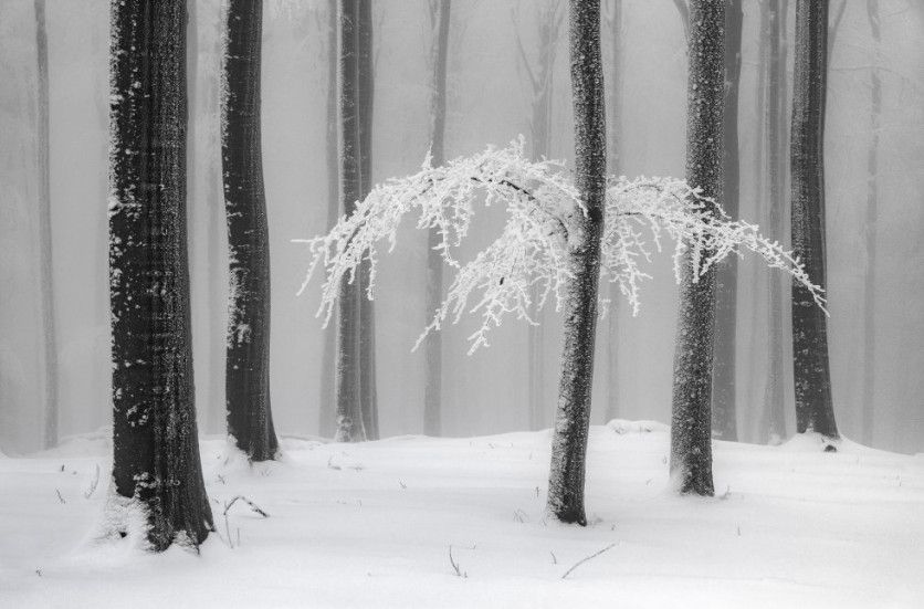 Bosque congelado en Alemania Además de los dos premios principales (a la mejor serie y a la mejor foto única), este año se han concedido una serie de menciones especiales. Una de ellas es The Monochrome Award, que premia una imagen en blanco y negro. La elegida por el jurado nos introduce en mitad de un bosque helado en Alemania, inmortalizado de manera magistral por Heiner Machalett. HEINER MACHALETT