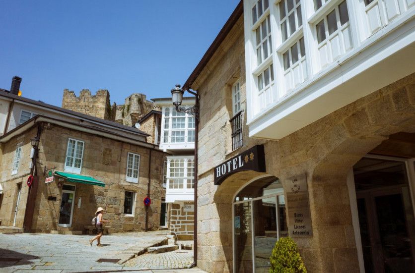 Ribeira Sacra (Ourense) El Sendeiro Os Bosques Máxicos es, en realidad, un camino bien señalizado (PR-G 213) que discurre por la preciosa Ribeira Sacra entre esplendorosos castañares y robledales, pueblos, arroyos de bosque, viñedos vertiginosos y molinos de agua. Desde la localidad de Castro Caldelas (en la imagen), con su castillo en lo alto, se pueden combinar dos circuitos circulares (bucles): el bucle Longo (16 kilómetros) y el bucle Curto (5,5 kilómetros), que suman 700 metros de desnivel, entre ascensos y descensos. A lo largo del camino encontraremos monasterios abandonados como el de San Paio de Abeleda, puentes de piedra medievales, iglesias rurales y aldeas diminutas. La comarca de Castro Caldelas, a 49 kilómetros de Ourense, está marcada por los viñedos que dibujan su paisaje principal. El cultivo de la vid en los cañones del Sil y del Miño, de una verticalidad imposible, empezó en la época romana y se ha ganado la etiqueta de viticultura heroica. Se pueden visitar interesantes y pequeñas bodegas locales, como Adega Algueira, en Doade; Ponte da Boga, y la más cercana Adega Vella, ubicada en la OU-903. LUIS DAFOS ALAMY