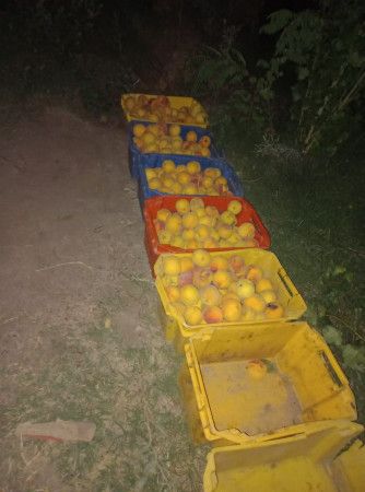 Personal de Policía Rural, delegación Sur, detuvo a seis personas que saqueaban la carga de duraznos de un camión.