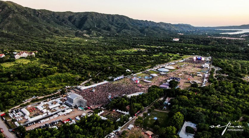 Vista aérea del Cosquín Rock 2022. Sepia Fotografía