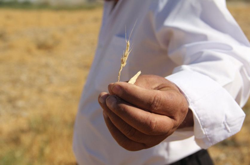 Adulrahman muestra los restos de la última cosecha de trigo "Las estaciones han cambiado notablemente y las temperaturas están subiendo. Cada vez hace más calor durante mayor parte del año", detalla el campesino.
