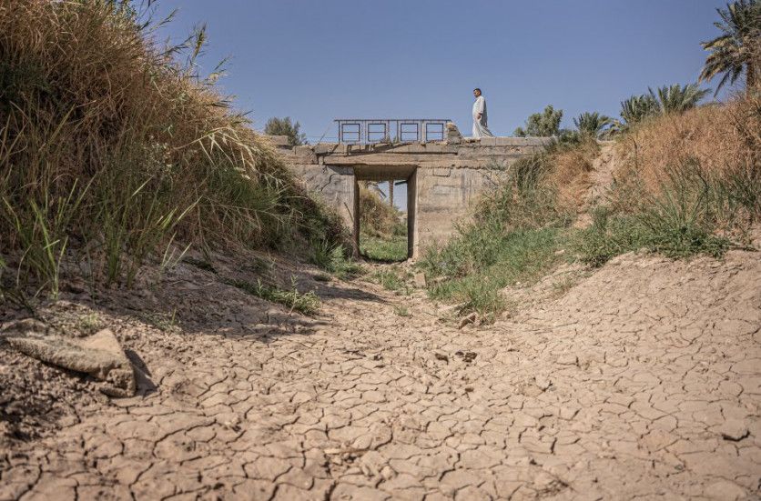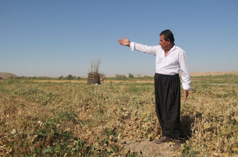 Uno de los canales de riego que tiene su origen en el lago Hamrín se ha secado a su paso por la periferia de la ciudad de Diyala. Gran parte de los productores agrícolas y ganaderos de la región se encuentran en una situación crítica frente a la escasez de agua para el riego y los animales.