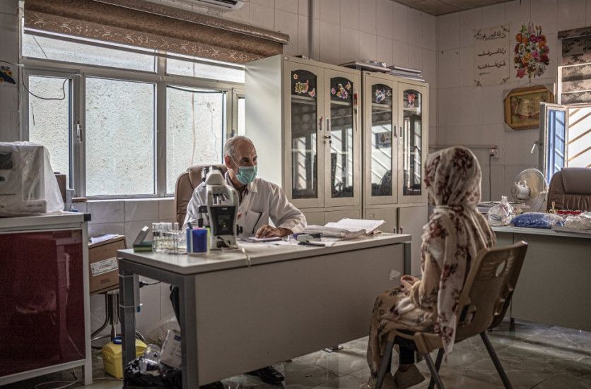 Un médico que prefiere no citar su nombre atiende a una paciente en un centro de salud comunitario en Diyala. El personal del ambulatorio destaca un aumento de diez veces en el número de pacientes que presentan síntomas de enfermedades transmitidas por el agua y desnutrición desde que comenzó el período de escasez de agua a finales de 2020.