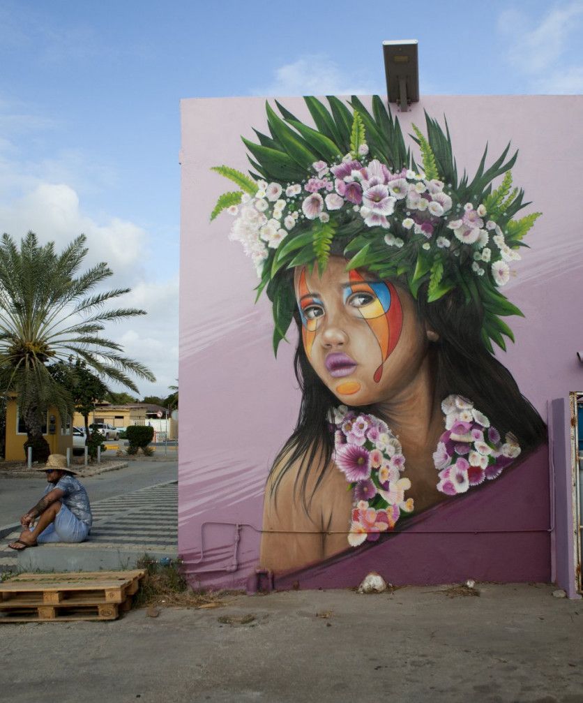 Al artista Tymon de Laat le invitaron en febrero de 2021 a la isla de Bonaire, en el extremo sur del mar Caribe, para que compartiera sus conocimientos y experiencia con los jóvenes. Un viaje del que por supuesto dejó su huella en el lugar con esta colorida obra titulada Leilana', que se encuentra en una de las paredes exteriores del bar de cócteles Tiki & Co.