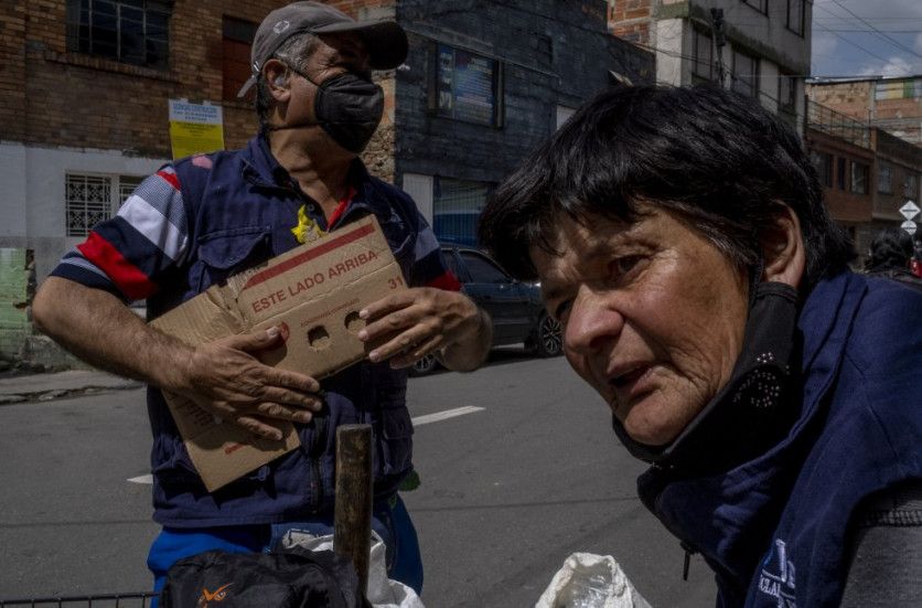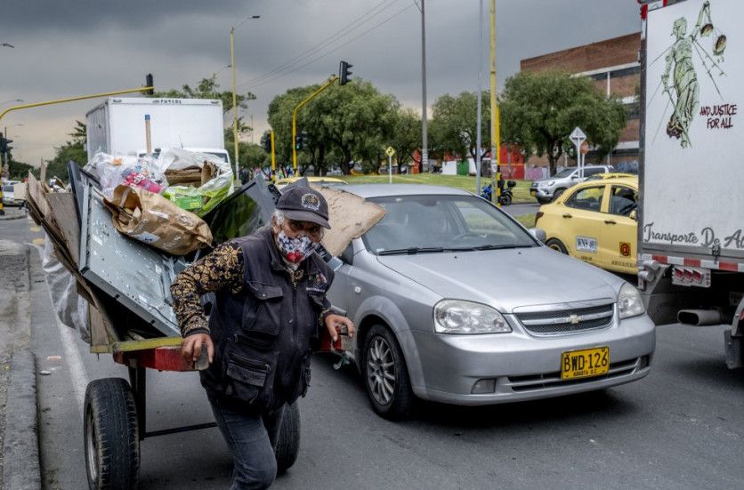 Unos 25.000 recicladores en Bogotá se ganan la vida vendiendo residuos. Mantienen a sus familias con lo que ganan a diario que, en jornadas buenas, rondan los 10 euros. Esto es un día con cuatro recuperadores ambientales de más de 60 años.