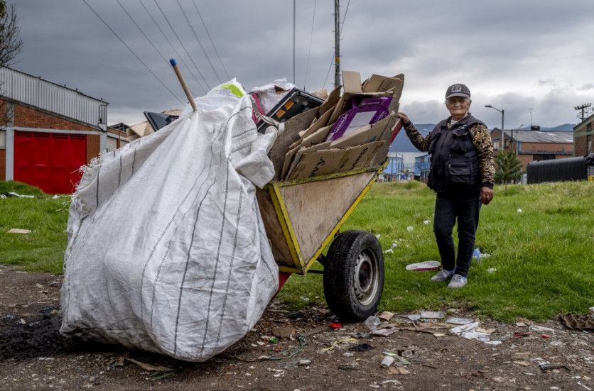Don Manuel Calderón Salazar tiene 84 años y un carrito de la compra con el que nunca entra a un supermercado. Desde hace nueve años, recoge lo que otros ya no necesitan y lo lleva a la bodega de aprovechamiento de residuos del barrio de El Rincón, al norte de Bogotá. Como él, 308 adultos mayores de 65 años se encargan de esta ardua tarea.
