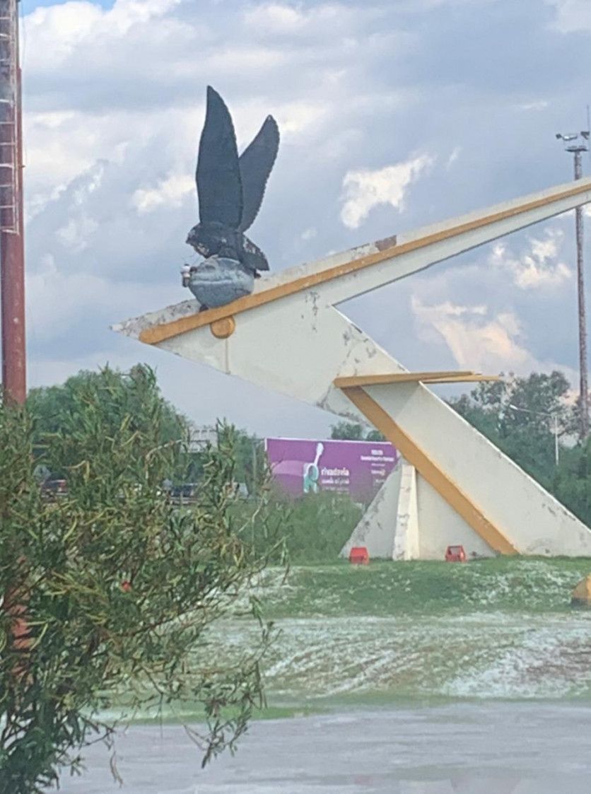 La fuerte tormenta de granizo de este miércoles causó daños varios daños en los departamentos. Además de ramas y hojas, en el departamento de Guaymallén el Cóndor del Predio de la Virgen, perdió su cabeza.