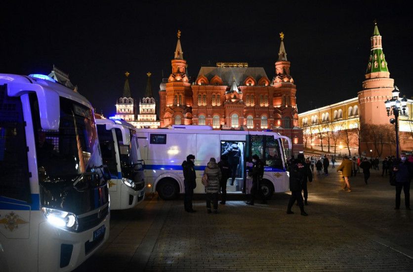 Las furgonetas de la policía se llevan a los detenidos en las protestas del miércoles en Moscú. El crítico del Kremlin encarcelado, Alexei Navalny, instó el 2 de marzo a los rusos a organizar protestas diarias contra la invasión de Ucrania por parte de Moscú, diciendo que el país no debería ser una "nación de cobardes asustados" y llamando a Vladimir Putin "un pequeño zar loco". KIRILL KUDRYAVTSEV AFP