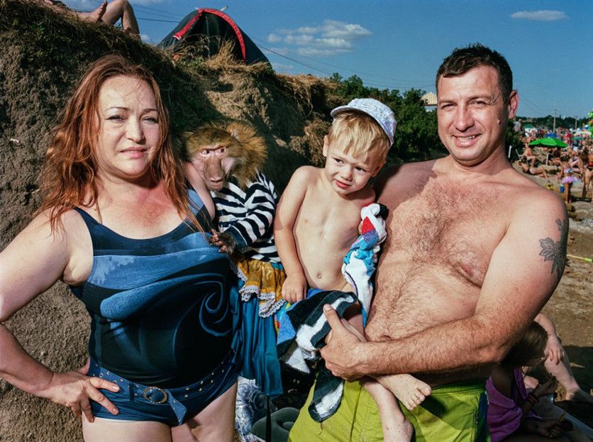 Yulia Kravchenko, artista de circo, con su mono en Odesa, 2017. MARK NEVILLE