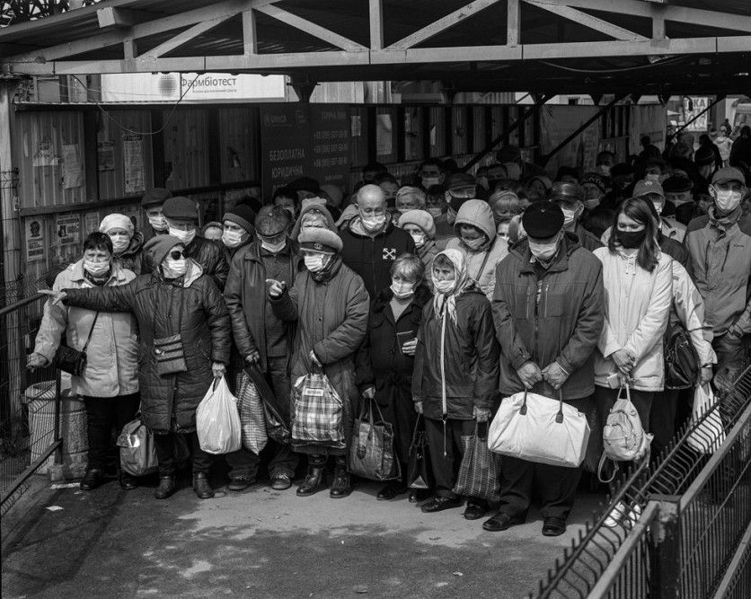 Cola para cruzar el puente de Stanytsia Luhanska, 2019. MARK NEVILLE