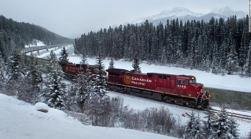 3. De Toronto a Vancouver a bordo del Canadian 4.466 kilómetros que se recorren en cuatro días y sus cuatro noches pasando por Kamloops, Jasper, Edmonton, Saskatoon, Winnipeg, Sioux Lookout y Sudbury. The Canadian Pacific Railway se puso en servicio en 1954, y en 1978 Via Rail asumió su gestión transformándolo en un viaje mucho más demandado como tren turístico.