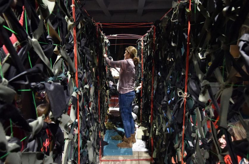 Un voluntario teje redes de camuflaje para el ejército ucraniano, mientras continúa la invasión rusa de Ucrania, en Lviv, Ucrania. REUTERS/Pavlo Palamarchuk