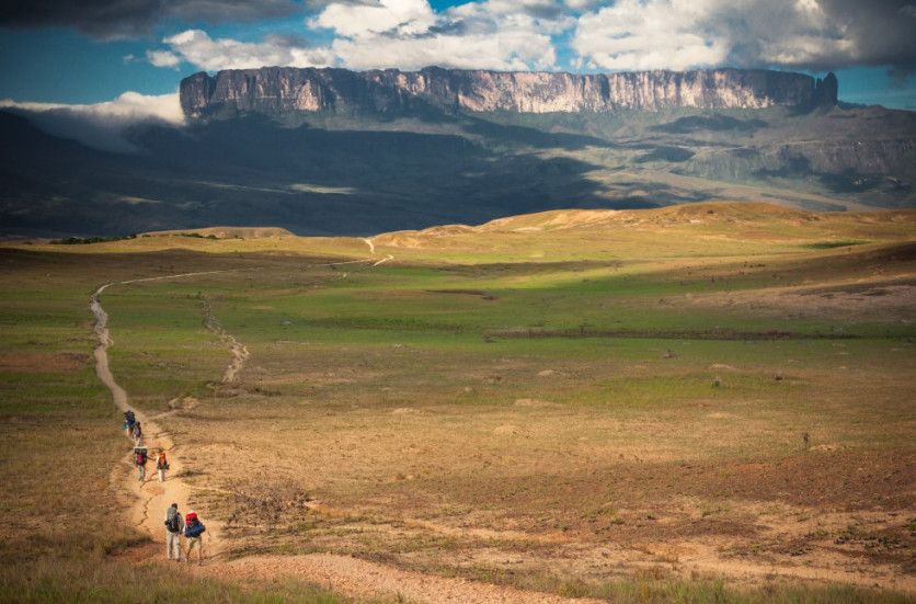Tepuy Roraima, en el parque nacional Canaima (Venezuela, Brasil y Guyana) Los tres millones de hectáreas del parque nacional Canaima -también patrimonio mundial- se reparten por territorio de Venezuela, Brasil y Guyana, y están cubiertas, en un 65%, por tepuyes, que son montañas tabulares con características biogeológicas únicas. Los expertos las consideran unas de las formaciones geológicas más antiguas de la Tierra (unos dos mil millones de años). El más alto es el tepuy Roraima, que en su meseta de más de 30 kilómetros cuadrados, a más de 2.800 metros de altitud, marca exactamente la frontera entre los tres países sudamericanos. Solo se puede ascender por el lado venezolano, desde la población de Paraitepuy, a unos 1.200 metros de altitud, con 600 habitantes de la etnia pemón, que se ha convertido en campamento base y punto de partida para los trekking y excursiones rumbo a la cima.