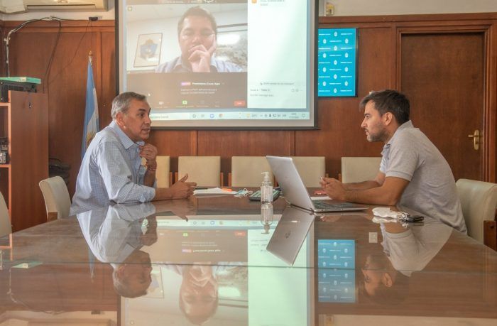 El ministro Vaquié y el el director de Hidrocarburos, Estanislao Schilardi, en la reunión llevada a cabo vía Zoom.