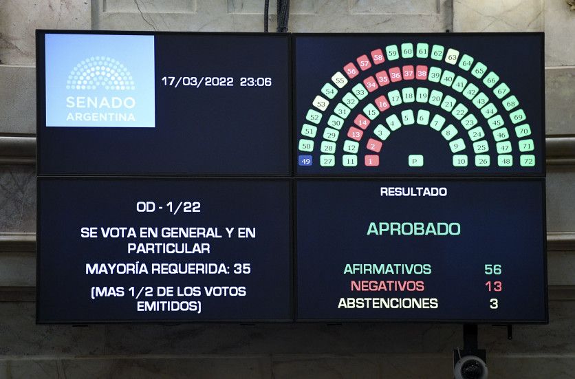 Al cabo de nueve horas de sesión, que mantuvo un tono relativamente calmo sin cruces significativos entre el oficialismo y oposición, la iniciativa que autoriza el financiamiento para cancelar los vencimientos de deuda con el organismo financiero obtuvo 56 votos positivos, 13 negativos y tres abstenciones.