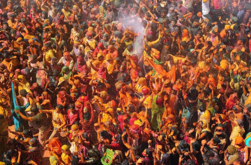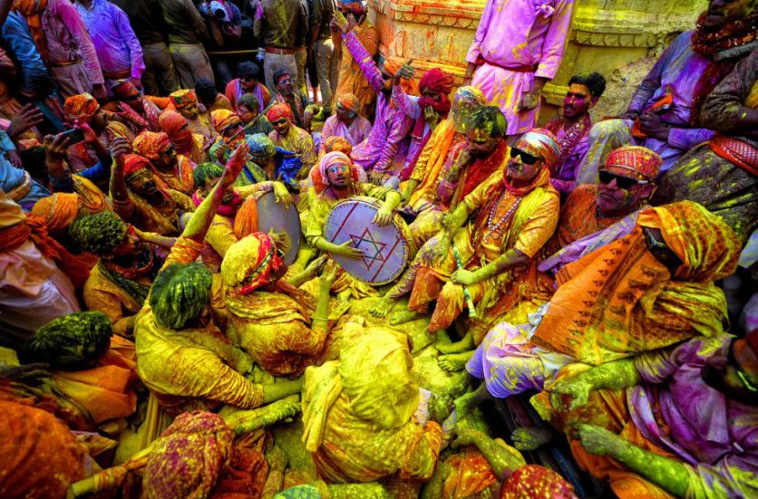 El Holi es uno de los festivales más vibrantes en el calendario cultural de la India, y en él se rompen también las barreras sociales entre ricos y pobres o entre hombres y mujeres. Recibe distintos nombres en varias partes del país, e incluso tiene diferentes duraciones. En Barsana, por ejemplo, se celebra una fiesta previa: el Lathmar Holi Festival (en la imagen), que tiene sus raíces en una leyenda hindú que cuenta que Krishna viajó desde su pueblo natal de Nandgaon hasta Barsana para visitar a su amada Radha.