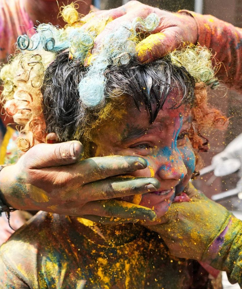 La tradición regresa después de que los dos últimos años no se haya celebrado debido a la pandemia -eso sí, las autoridades de Delhi han pedido a la población que evite las grandes concentraciones de gente-. Al estallido de colores, se suman también cantos y bailes en una fiesta religiosa hindú que, según los estudiosos y sin que haya datos que lo puedan acreditar, se remonta muchos siglos atrás; incluso hay poemas del siglo IV donde ya se citan estas celebraciones. En la imagen, un niño es espolvoreado con coloridos polvos en la localidad de Jammu.