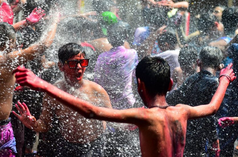 Lanzar agua coloreada es también habitual en este día dedicado a olvidar los errores del pasado y perdonar deudas. Así, no solo se celebra que se deja atrás el invierno sino, según el hinduismo, la victoria del bien sobre el mal. En la imagen, la celebración del festival Holi en la localidad de Prayagraj este 18 de marzo.