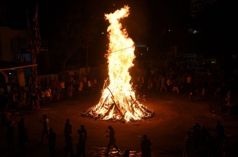 El festival Holi se celebra cada año en una fecha diferente, dependiendo de la última Luna llena del mes lunar hindú Phalguna, el undécimo de su calendario (suele caer entre finales de febrero y mediados de marzo). Son dos días de fiesta que comienzan la víspera (Holika Dahan) con el encendido de una pira al crepúsculo, alrededor de la cual se baila y se tocan tambores, algo que simboliza la quema de la maldad. Una escenificación de la leyenda, contada en las 'Upanishád', los 'Puranas' y otros textos sagrados del hinduismo, de Jirania Kashipú, rey de los demonios, matado por un avatar del dios Visnú, y de su hermana Holika, quemada en una hoguera mientras ambos trataban de acabar con la vida del hijo de Jirania Kashipú. En la imagen, la celebreación del Holika Dahan, anoche en la ciudad de Ahmedabad.