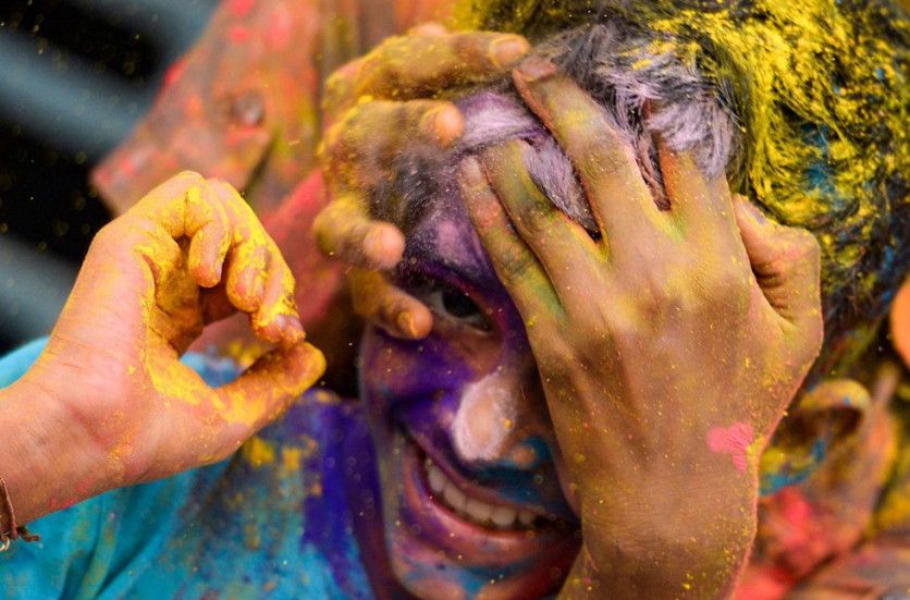 El color lo aportan pigmentos orgánicos, como flores de caléndula, rosas, hibisco azul y rojo, cúrcuma e incluso hojas de espinaca. Los tonos utilizados en la celebración tienen un significado simbólico, y deben transmitir deseos positivos y alegría. El azul, por ejemplo, simboliza la calma y a la deidad hindú Krishna, representado con piel azul. En la India el rojo está asociado al matrimonio y puede por lo tanto significar amor o fertilidad. El verde simboliza los inicios y también representa el nacimiento. El amarillo, obtenido de la cúrcuma, significa buenos augurios. En la imagen, un chico con la cara llena de polvos de colores en Chennai, este viernes.