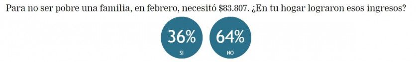 Debido a los números que entregó el Instituto Nacional de Estadística y Censos, diario Sitio Andino invitó a sus lectores y a los oyentes de Radio Andina a participar de una encuesta que tuvo la siguiente pregunta: "Para no ser pobre una familia, en febrero, necesitó $83.807. ¿En tu hogar lograron esos ingresos?".