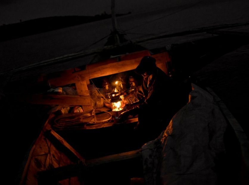 Ismael Chubaka enciende los faros a bordo de un gran yorogo, un tipo de pesquero con tres cascos. Los focos atraen a los peces pequeños a las grandes redes arrastradas por los barcos. HUGH KINSELLA CUNNINGHAM