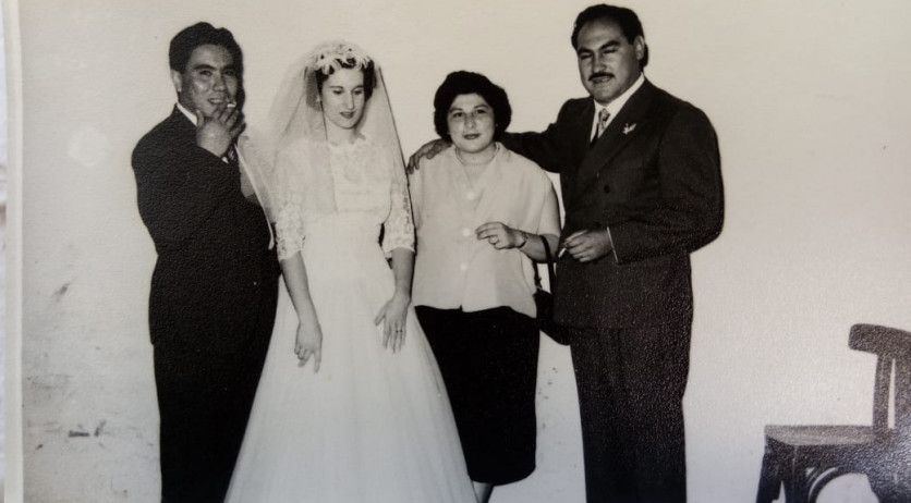 13 de diciembre de 1958. Ránelagh, Provincia de Buenos Aires: Oscar Matus, Gloriana Zucchini, Mercedes Sosa y Tejada Gómez.