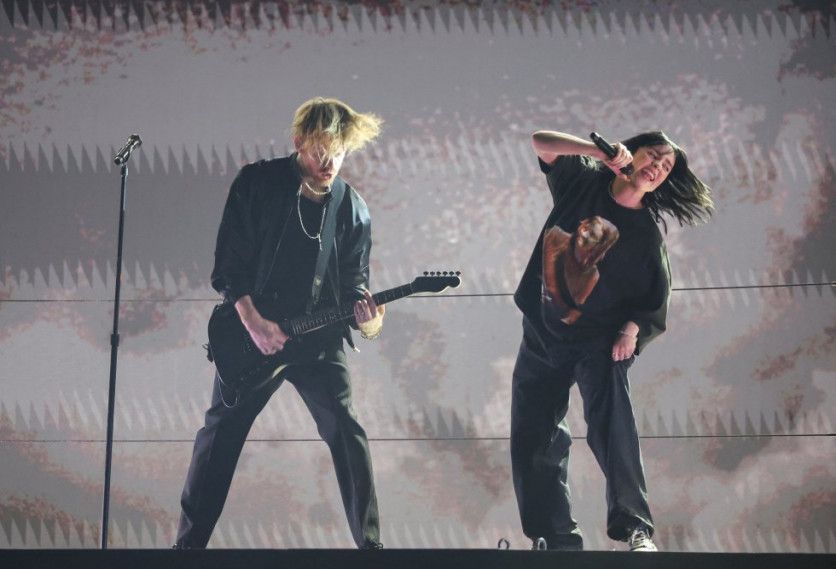 Billie Eilish ha recibido una ovación por su interpretación de 'Happier than ever' junto a Finneas O'Connell. MARIO ANZUONI REUTERS