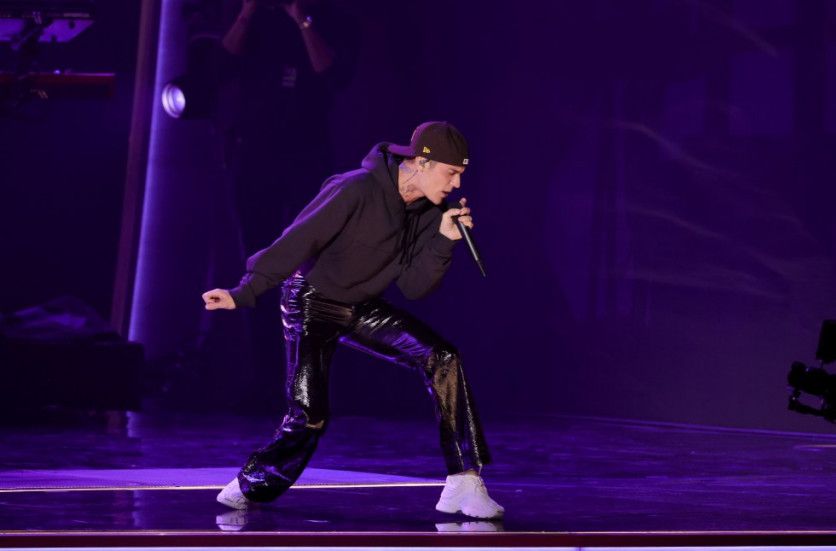 El canadiense Justin Bieber también subió al escenario a interpretar 'Peaches'. MATT WINKELMEYER AFP