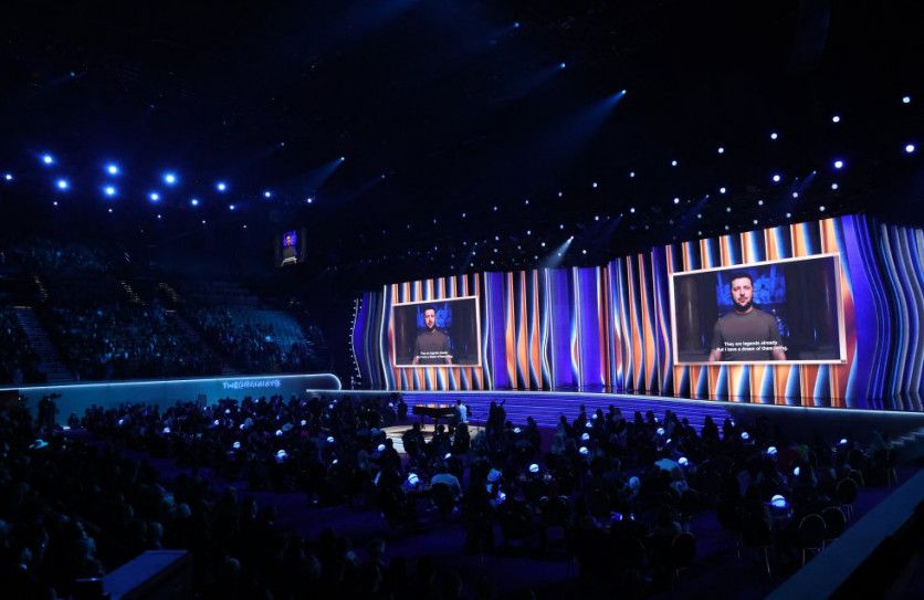 Una de las sorpresas de la noche fue la intervención del presidente de Ucrania, Volodimir Zelenskiy, quien mandó un mensaje grabado para hablar sobre la situación que está atravesando su país. MARIO ANZUONI REUTERS