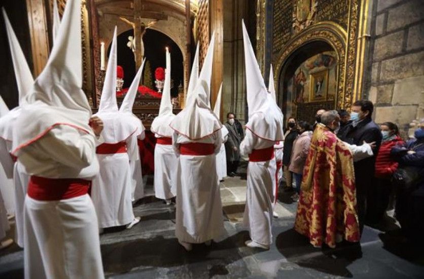 Procesión del Cristo de la Humildad que ha salido del convento del San Juan de los Reyes en la noche del Miércoles Santo de Toledo.