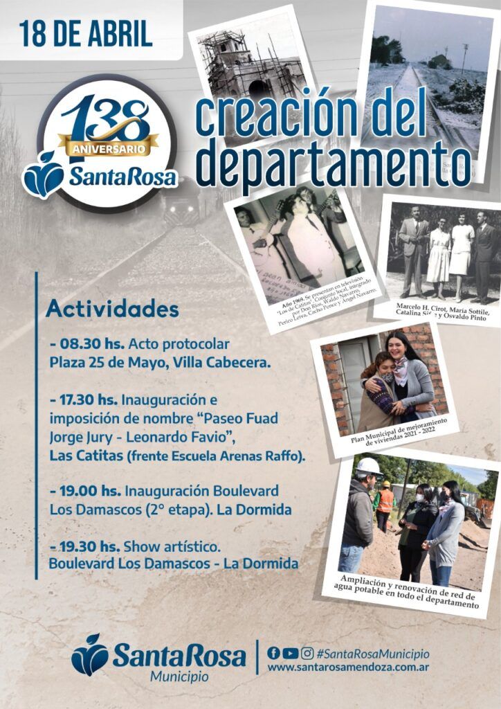 El departamento de Santa Rosa está de festejo ya que hoy cumple 138 años de vida y su gente lo celebra.