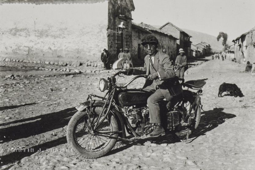 Autorretrato con la moto de Mario Pérez Yánez, Cuzco, 1934.