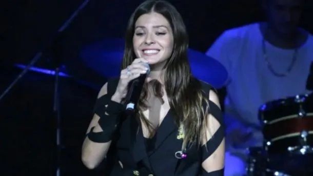 La China Suárez debutó cantante solista en el recital del artista cordobés Santiago Celli que la invitó a cantar el tema que interpretan juntos.