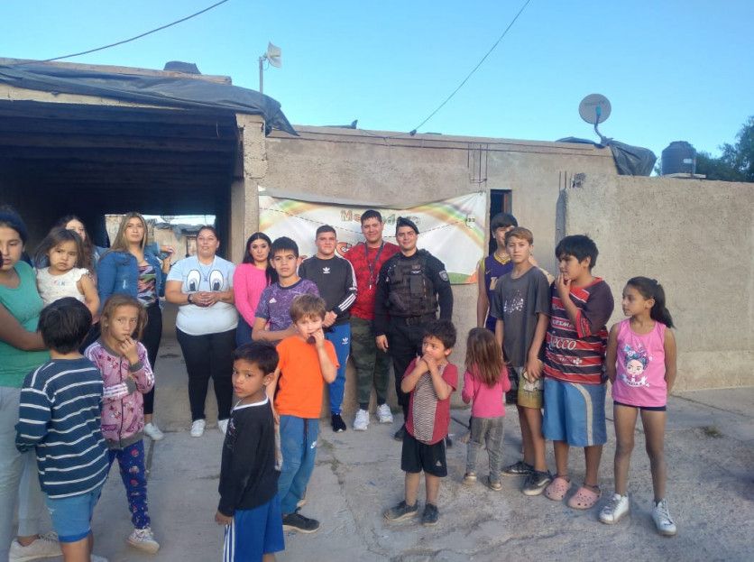En primera instancia, los policías visitaron el merendero "Shire", ubicado en el barrio Amas de Casa de Luzuriaga, Maipú, donde entregaron mercadería, útiles escolares y juguetes, entre otros.