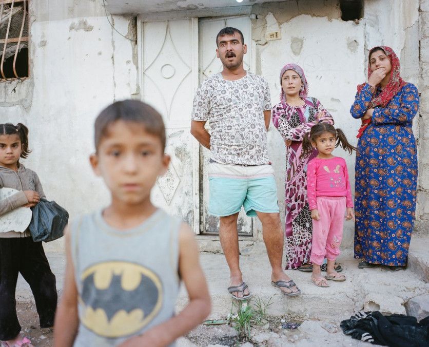 Desde la derecha, Rukane, de 30 años, Afa, de 22, y Ferman, de 26, originarios de la campiña de Alepo, viven con sus hijos en Kobane, como muchos desplazados sirios en el país. ALESSIO MAMO
