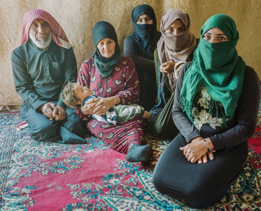Una mujer con su hijo y su madre, en un campo para desplazados internos cerca de la ciudad de Raqqa, en Siria. La mujer ha sufrido violencia doméstica en el campamento y su antiguo marido también maltrató a su hija mayor. Aquí los niños tampoco tienen acceso a ningún tipo de educación. ALESSIO MAMO