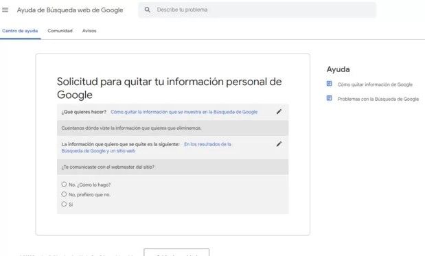 Según la empresa también sería ideal incluir en la solicitud capturas de pantalla donde se pueda apreciar la información que se desea remover.