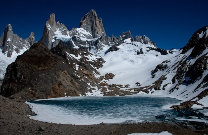 Laguna de los Tres, ubicada en El Chaltén, en la Patagonia austral, descongelándose en la primavera de la pandemia en Argentina, en noviembre de 2020. El Chaltén es una localidad fronteriza de la Patagonia Sur Argentina, enclavada en el Parque Nacional Los Glaciares, uno de los sitios reconocidos por Unesco como Patrimonio Natural Mundial. NATALÍ ORMAZÁBAL