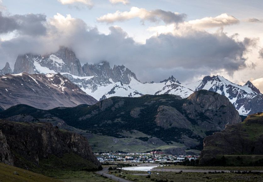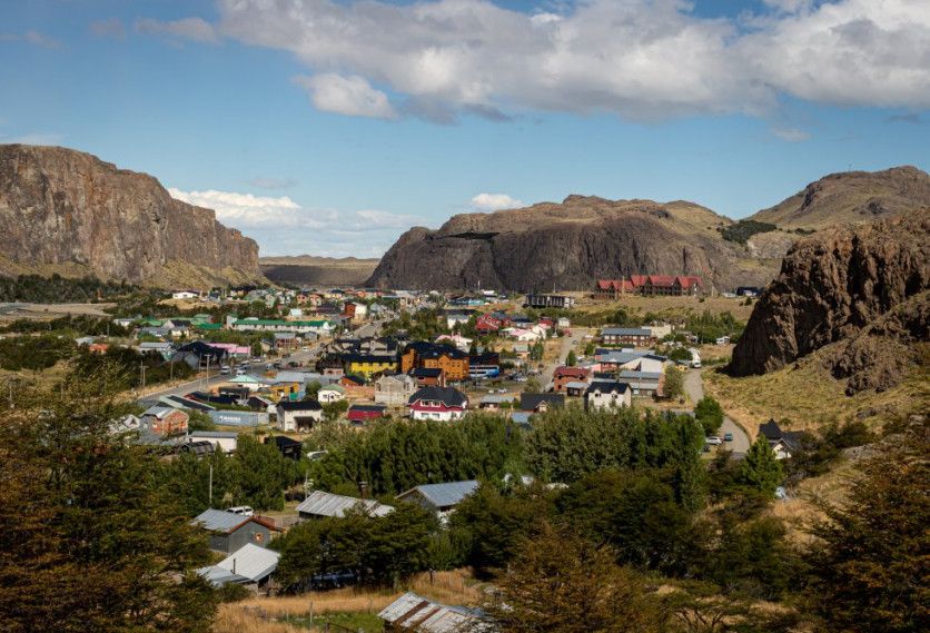 El pueblo de El Chaltén, visto desde el mirador de la ruta que ingresa a la localidad. En 1985, el Gobierno de la provincia de Santa Cruz decreta la fundación del pueblo y con el tiempo surgió el fenómeno esperado: El Chaltén y el parque se convirtieron en centro de escalada mundial y capital argentina de senderismo. Y el fenómeno inesperado: el pueblo creció tanto que los terrenos se agotaron y gran parte de sus habitantes hoy viven en situación precaria y condiciones de hacinamiento. NATALÍ ORMAZÁBAL